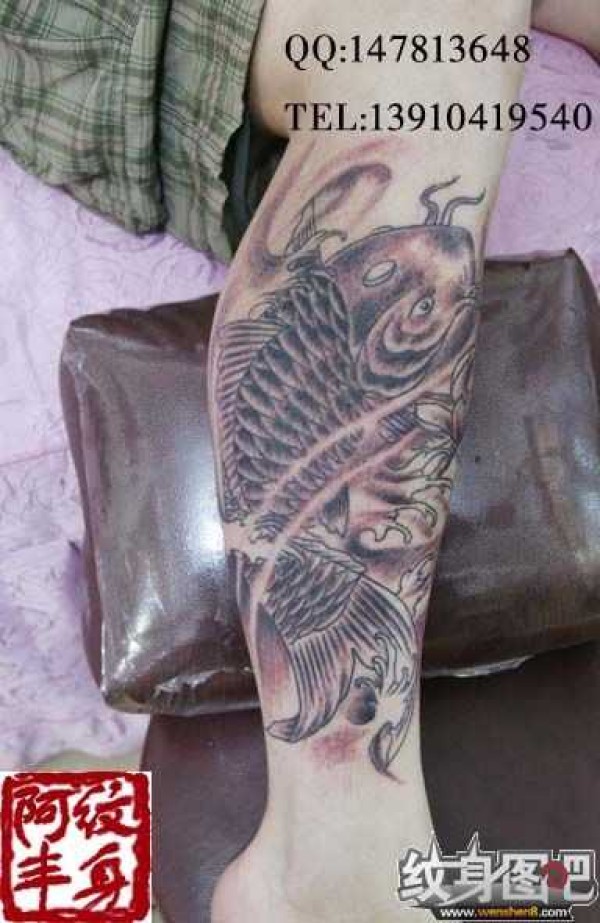 腿部纹身作品#纹身图案#阿丰纹身,刺青
