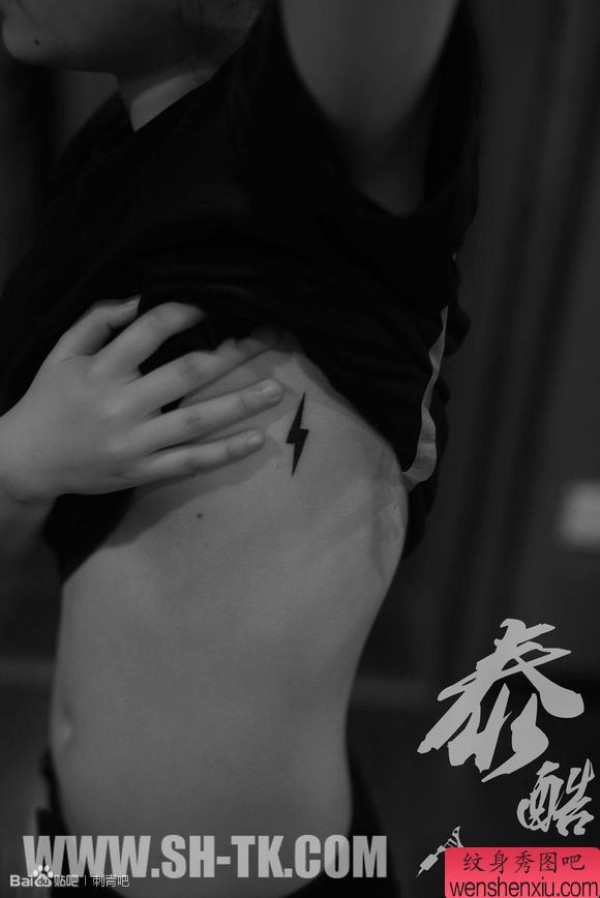 女性腰部闪电图腾纹身图案