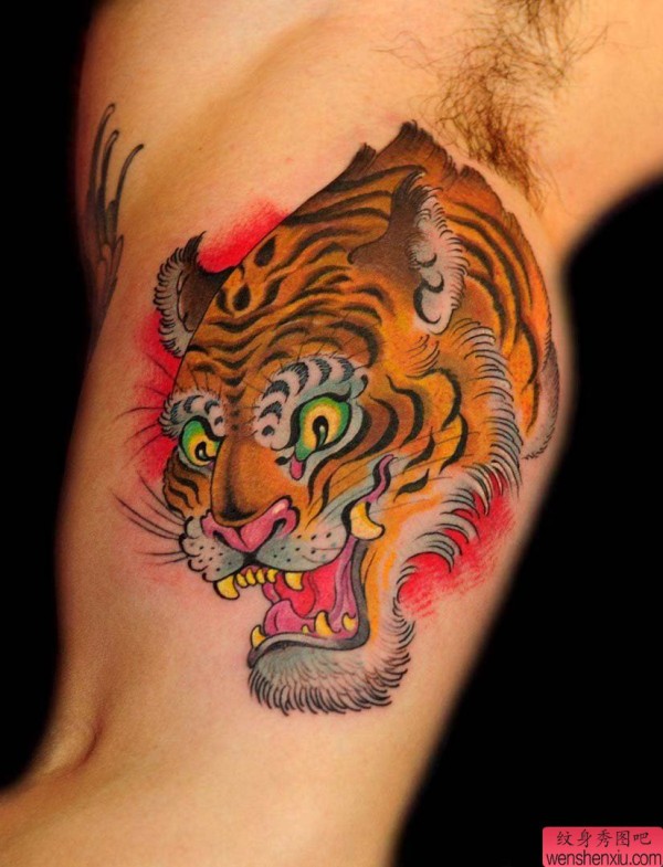 老兵纹身图吧分享一张school风格老虎纹身图案