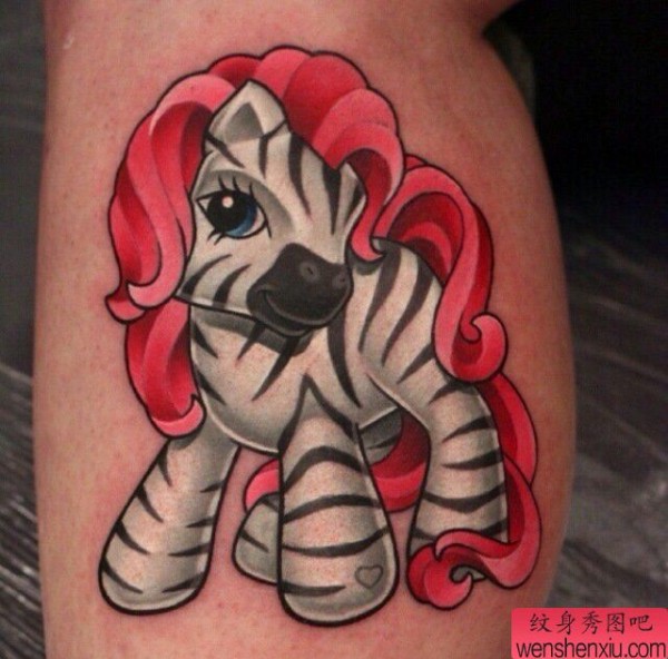 纹身图吧发布一张彩色腿部独角兽纹身图案