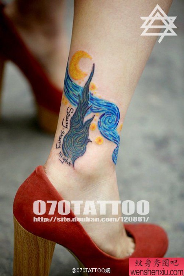 一张美女脚踝星空纹身图片