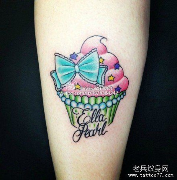 纹身图吧发布一张小清新蛋糕蝴蝶结纹身图案