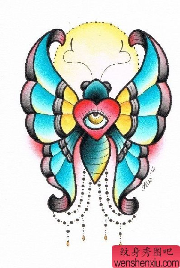 纹身图吧分享一张彩色蝴蝶手稿纹身图案