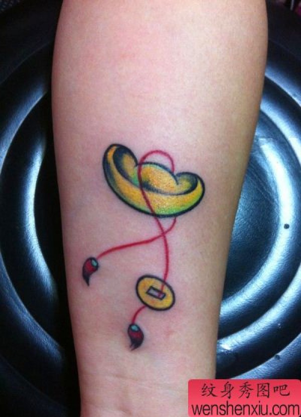 纹身图吧分享一张小清新金元宝铜钱纹身图案