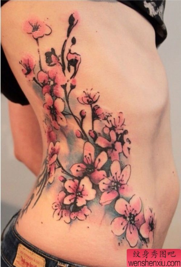 一张侧腰梅花纹身图案由纹身纹身网分享