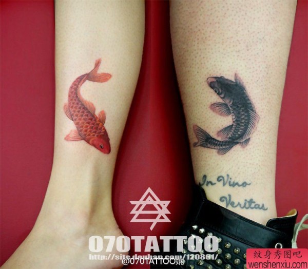 脚踝上一张漂亮时尚的水墨鱼纹身图片