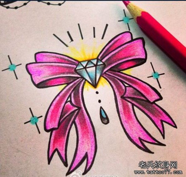 纹身图吧分享一张蝴蝶结钻石手稿纹身图案