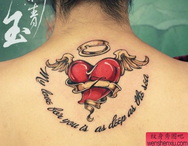 纹身图吧分享一张背部爱心纹身图案