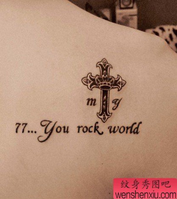 分享一张肩背皇冠十字架字母纹身图案由纹身分享