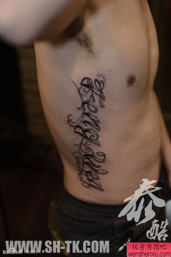 男士侧腰经典字母纹身图案