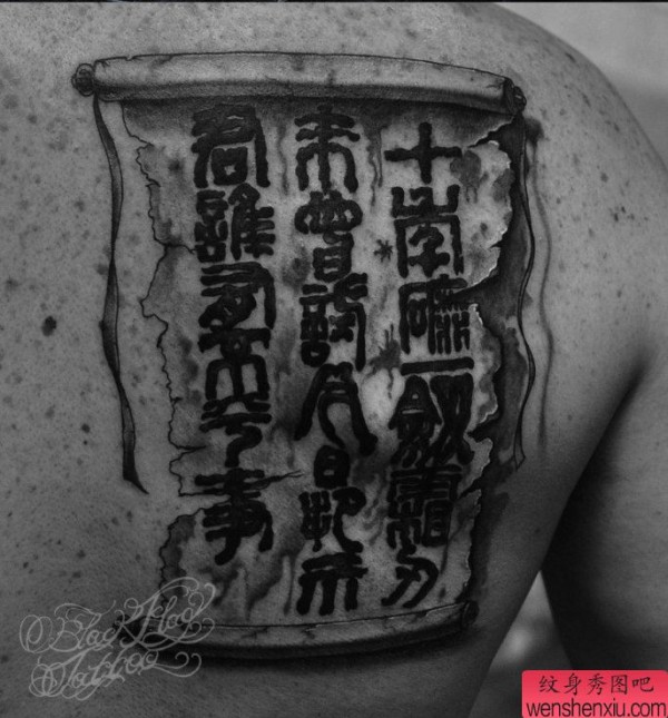 纹身图吧分享一张背部文字纹身图案