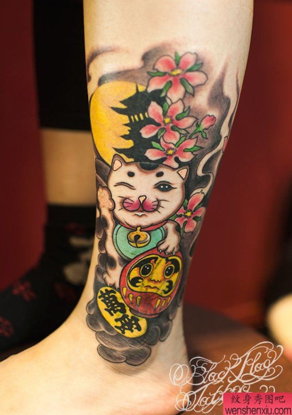 脚踝招财猫达摩纹身图案由纹身图吧分享