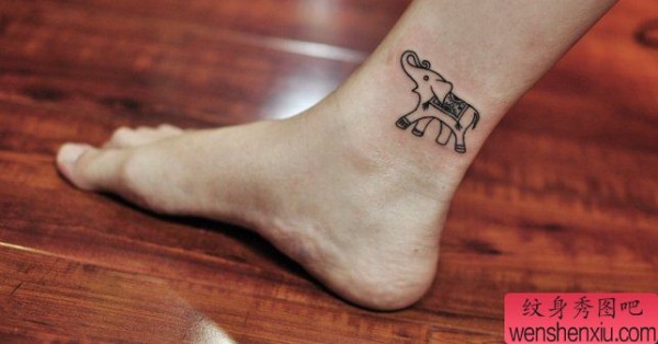 纹身图吧分享一张脚踝小象纹身图案