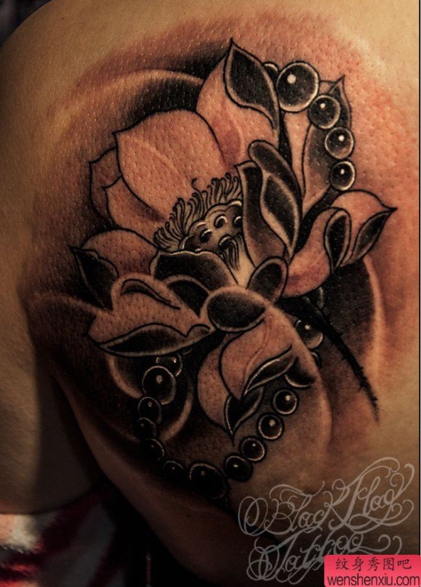 一张背部莲花纹身图案由纹身图吧分享