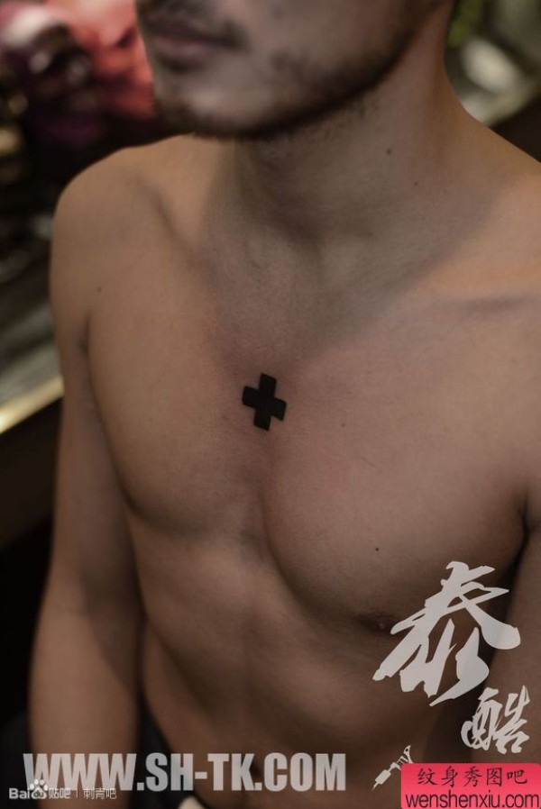 男士胸部一张信仰十字架纹身图案
