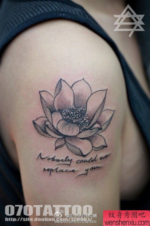 展示一张大臂上简单的莲花纹身图片
