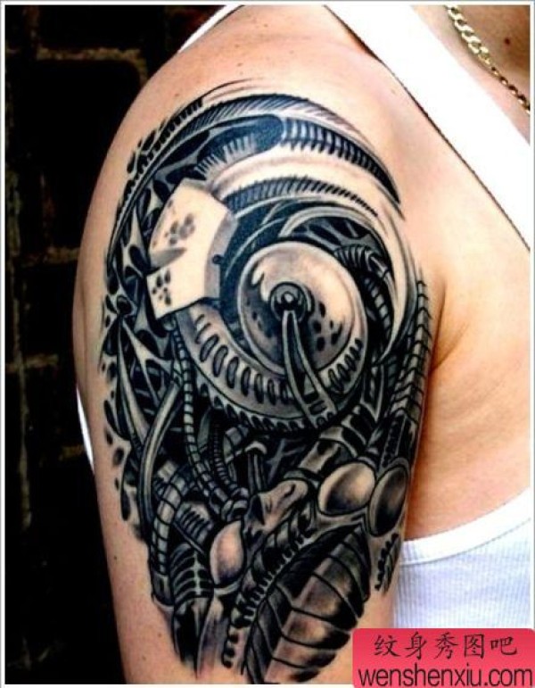 纹身图吧分享一张大臂机械纹身图案