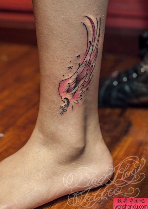 一张脚踝翅膀纹身图案由纹身图吧分享