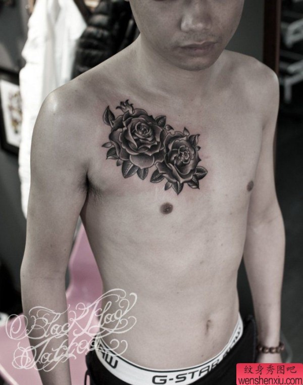 一张前胸玫瑰花纹身图案