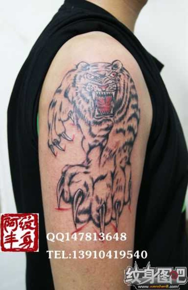 霸气半胛老虎纹身_动物纹身图案大全_纹身图吧