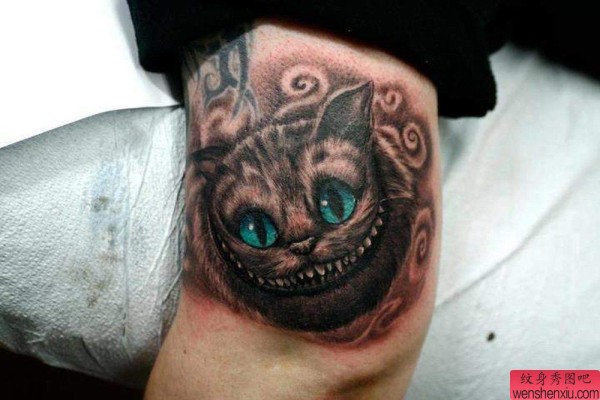 大臂上一张个性的猫纹身图案