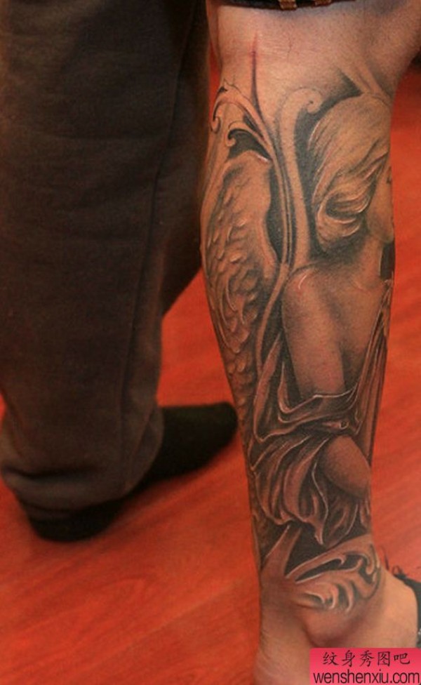纹身图吧分享一张包小腿圣母玛利亚纹身图案