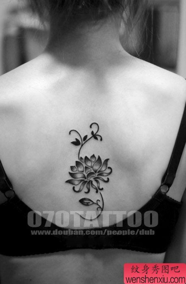 分享美女后背一张精致时尚的莲花纹身图案