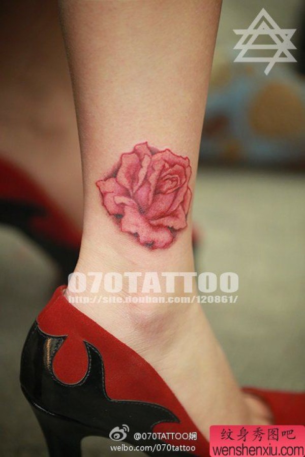 纹身图吧分享一张脚踝玫瑰花纹身图案