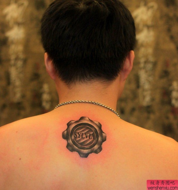 背部齿轮纹身图案