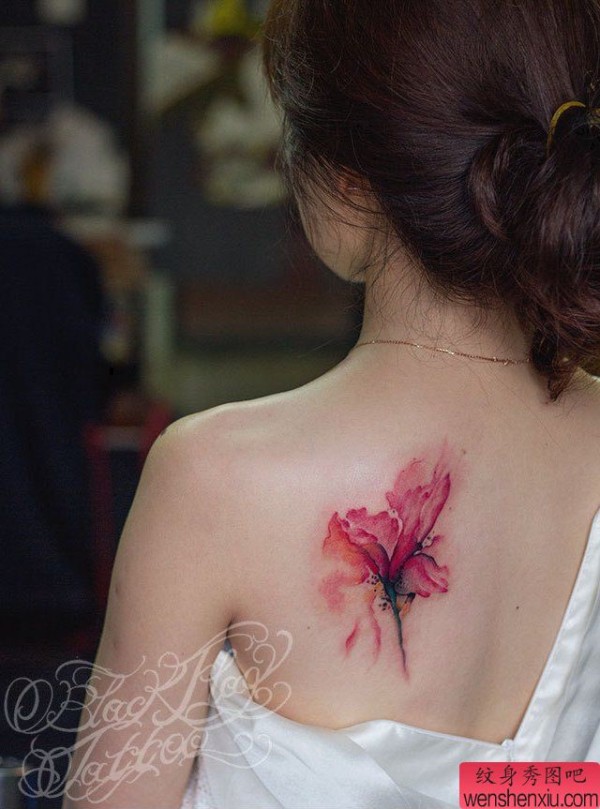 纹身图吧分享一张女性背部花纹身图案
