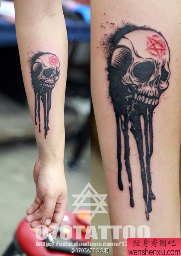 最好的纹身图吧分享一张手臂骷髅头纹身图案