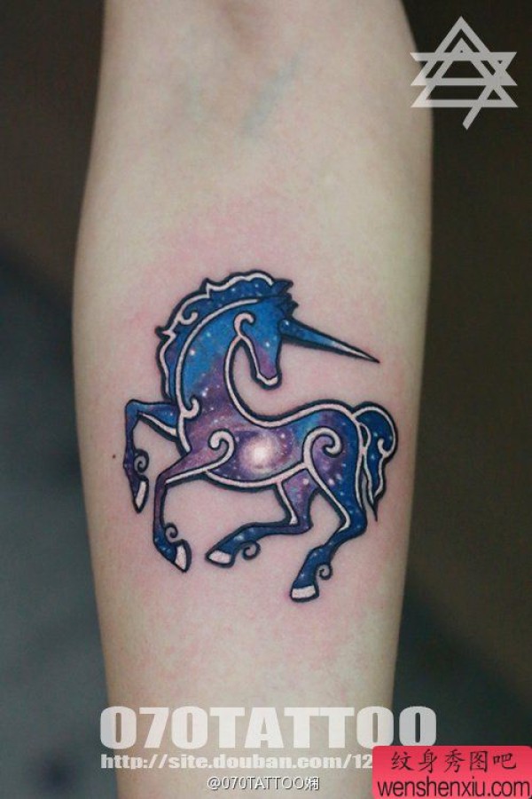 纹身图吧分享一张彩色独角兽纹身图案