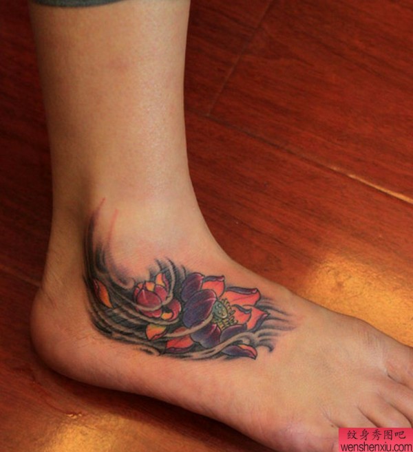 纹身图吧分享一张脚背莲花纹身图案