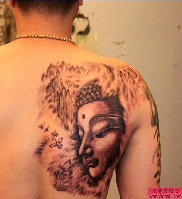 纹身图吧分享一张背部佛纹身图案