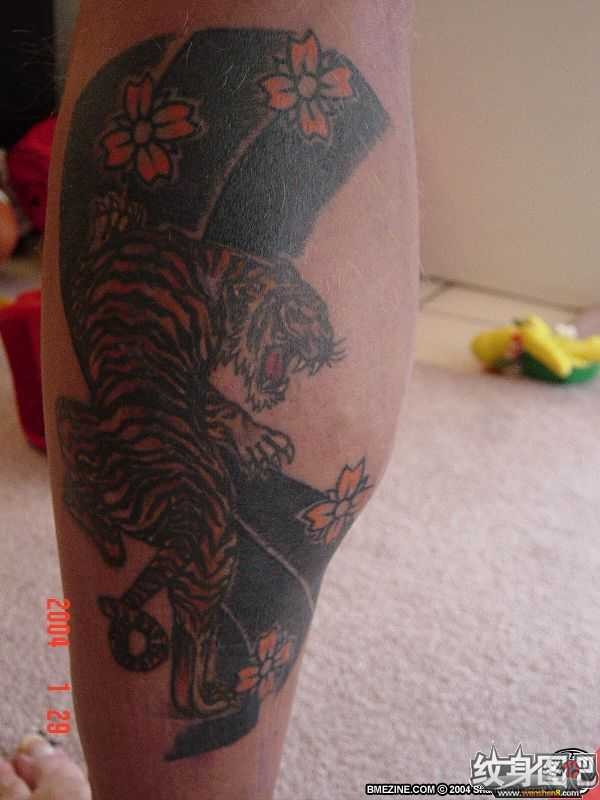 梅花和猛虎纹身