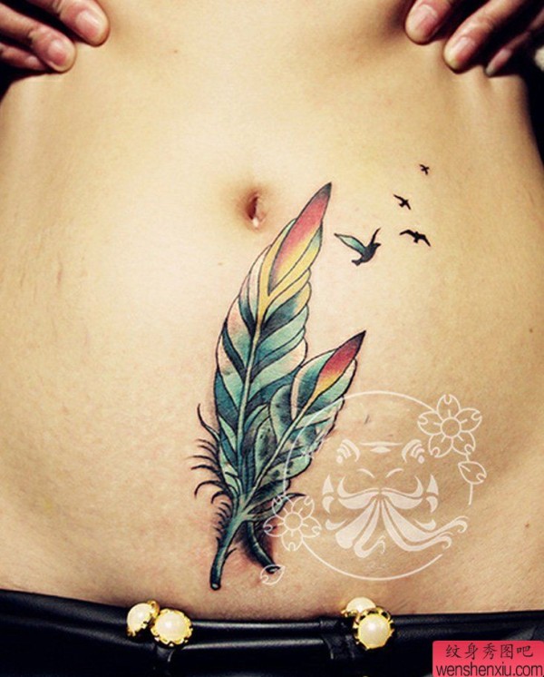 腹部羽毛纹身图案