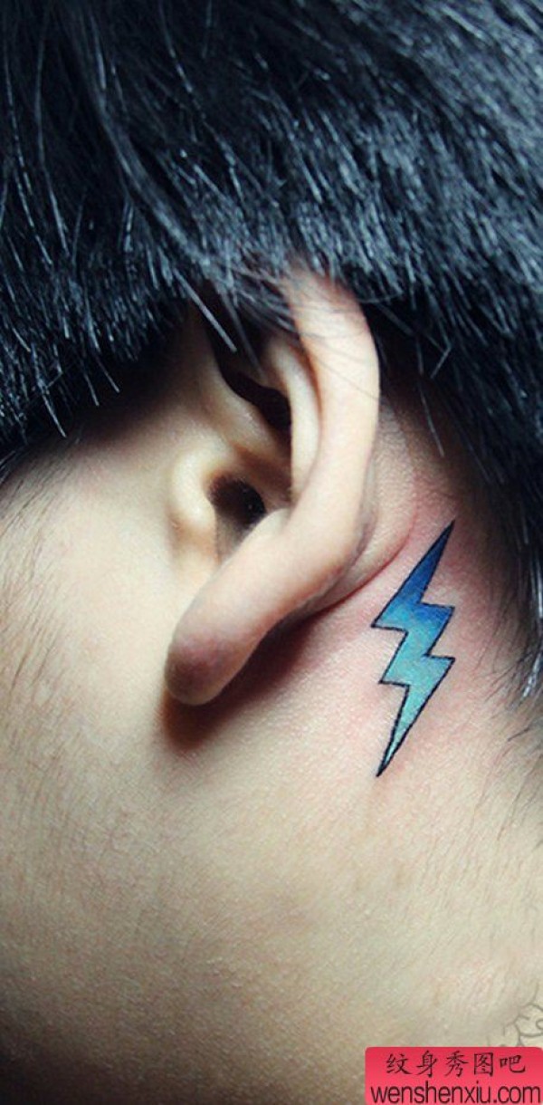 一张耳后闪电纹身图案