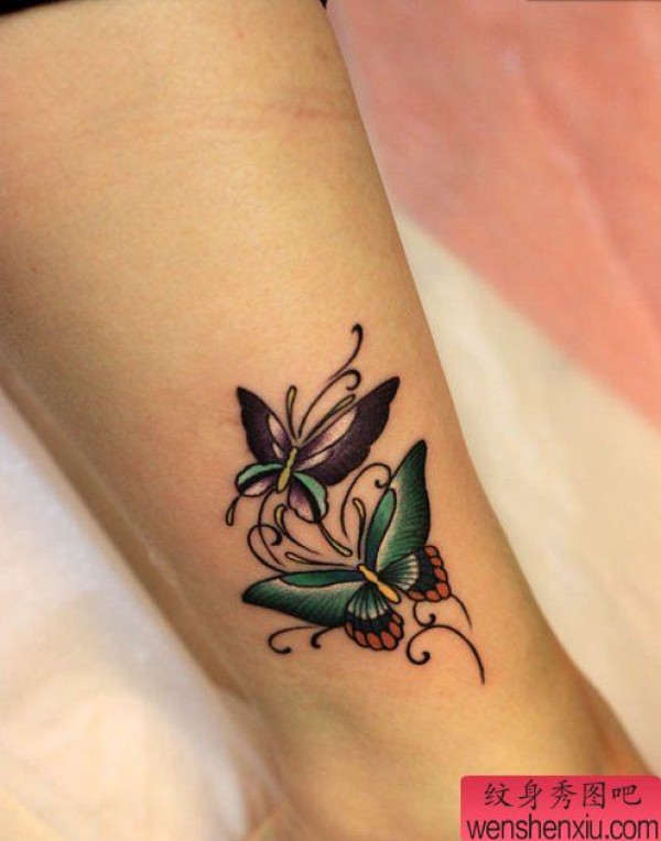 纹身图吧分享一张脚踝蝴蝶纹身图案