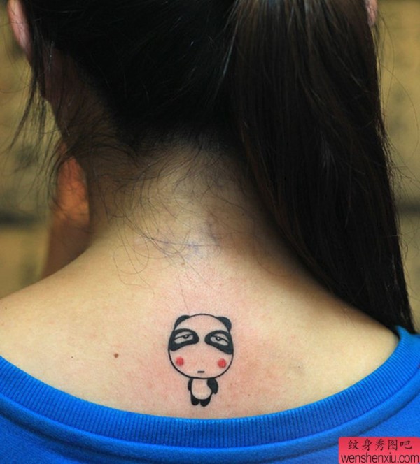 一张女性颈部熊猫纹身图案
