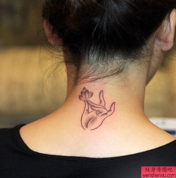 纹身图吧分享一张颈部佛手莲花纹身图案
