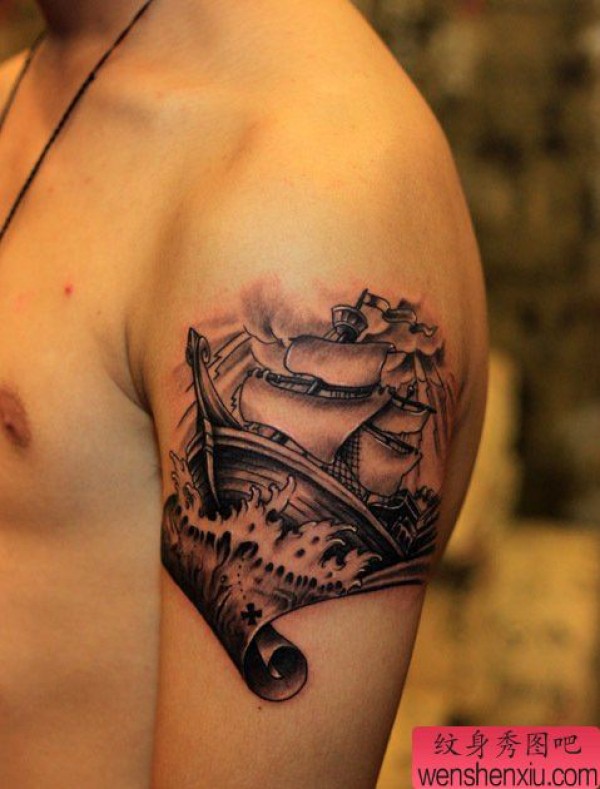 手臂帆船纹身图案