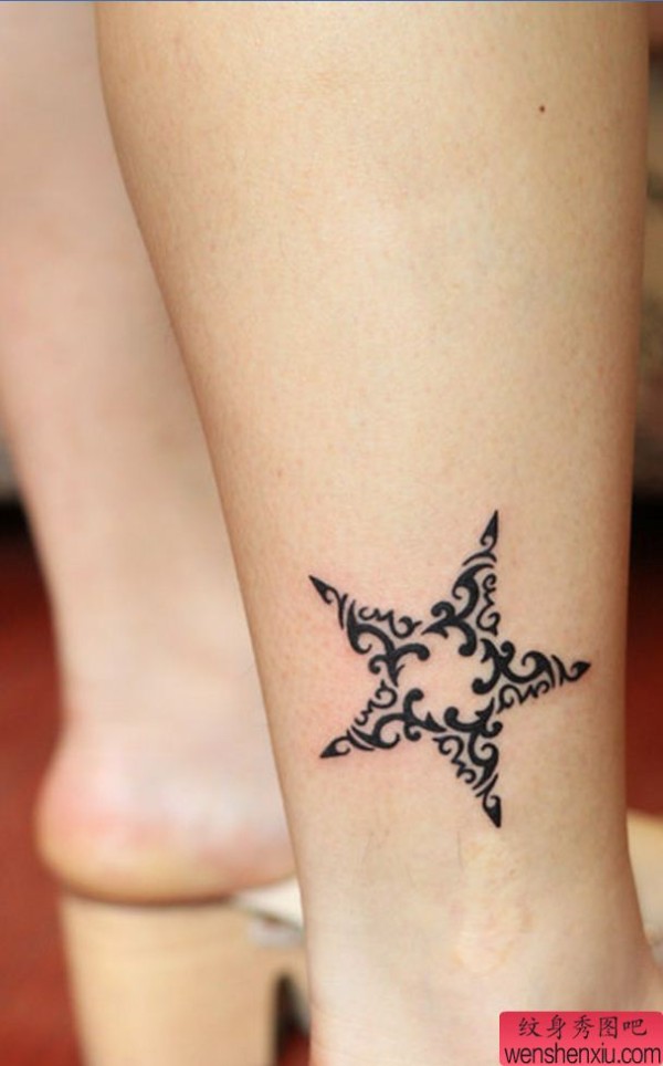 一张脚踝五角星纹身图案