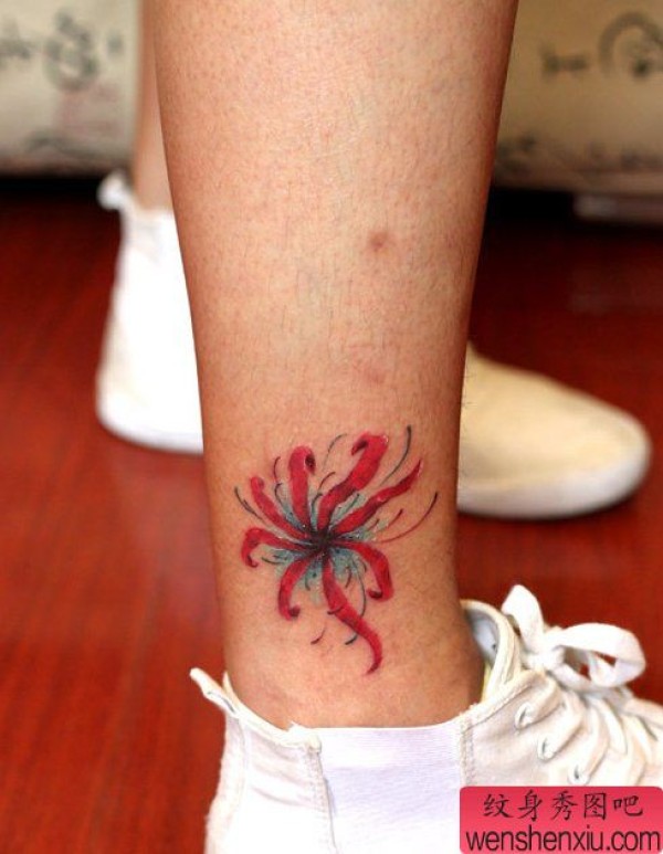 纹身图吧分享一张脚踝彼岸花纹身图案