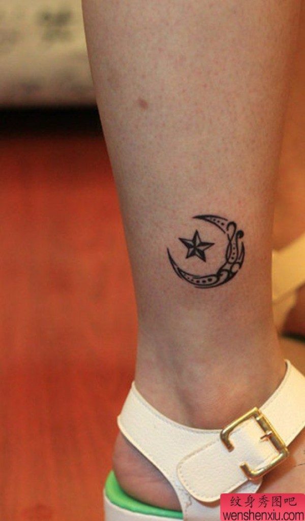 脚踝月亮五角星纹身图案
