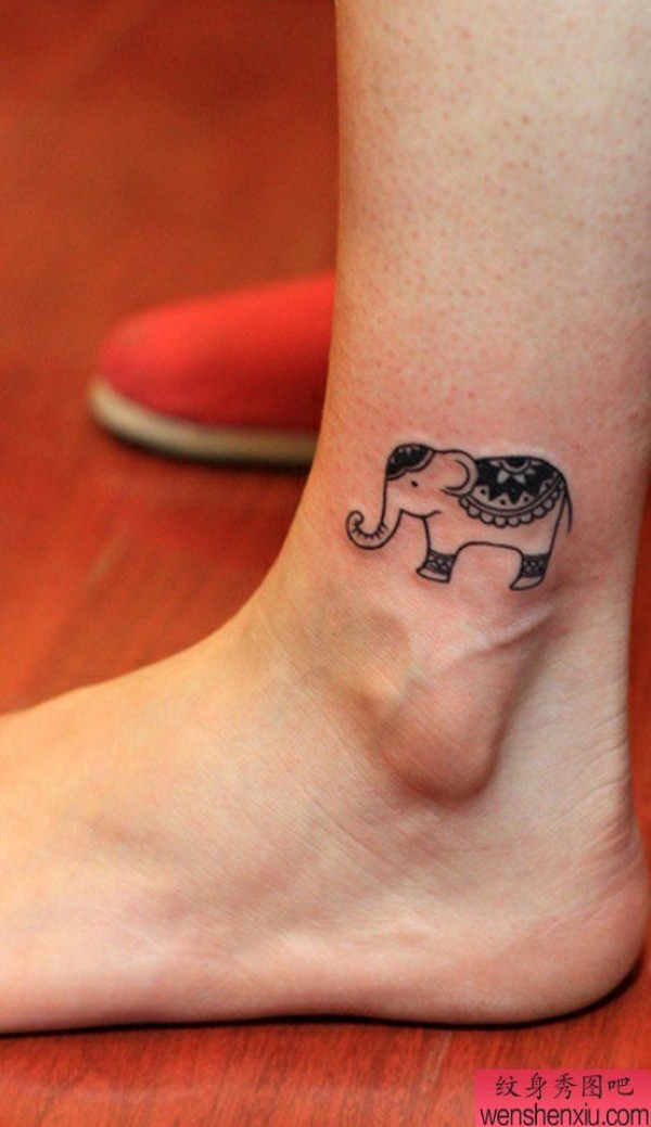 纹身图吧分享一张脚踝小象纹身图案