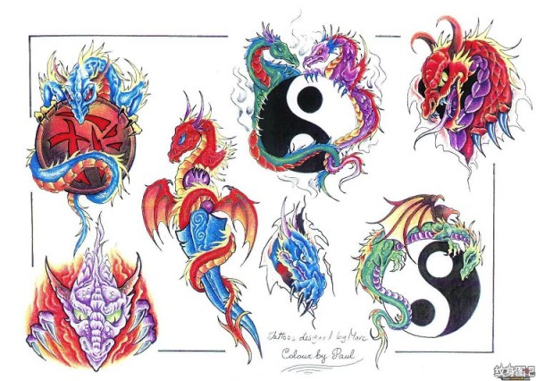 龙纹身手稿_一组老传统黑灰龙手稿纹身图案