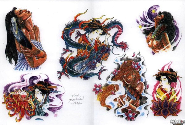 传统艺妓般若纹身图案手稿
