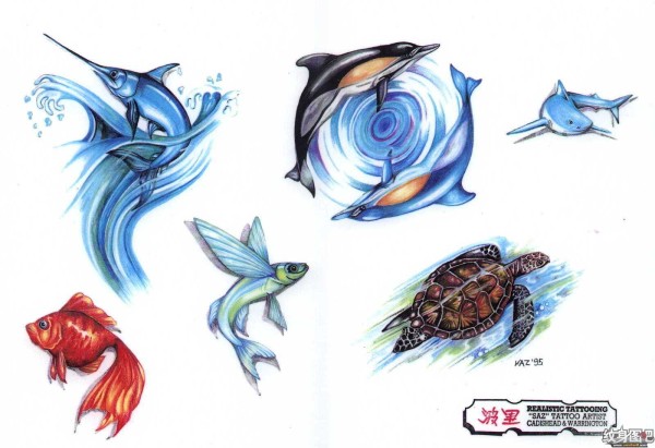 双鱼座纹身手稿_45张十二星座之双鱼手稿纹身图案