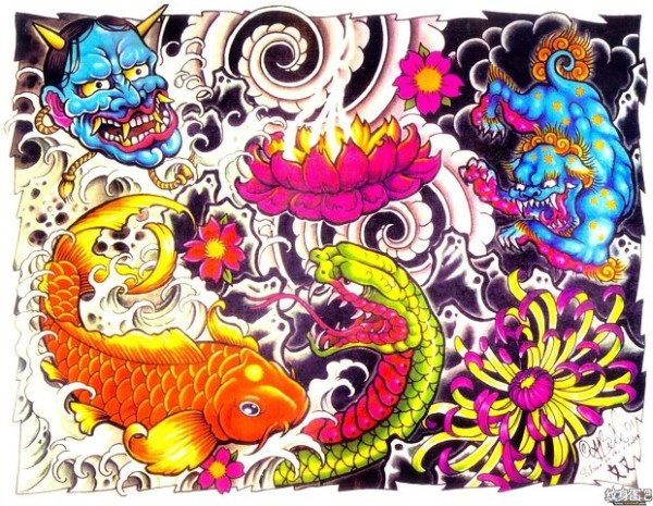 传统艺妓般若纹身图案手稿