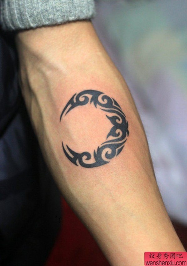 纹身图吧分享一张手臂图腾月亮纹身图案